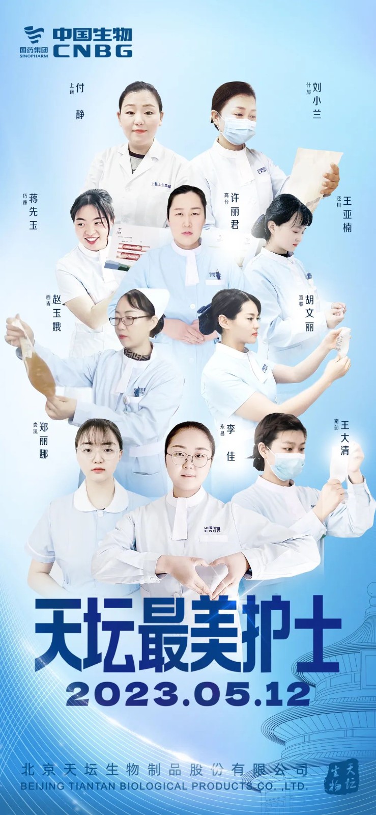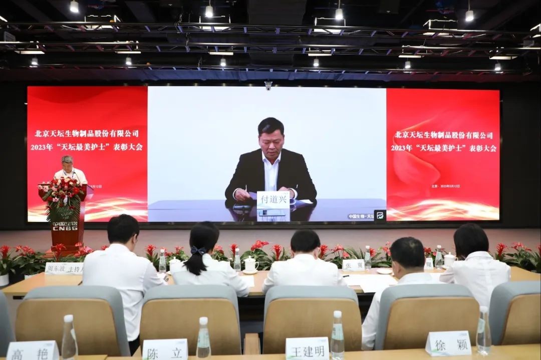 5月12日,2023年“天壇最美護(hù)士”表彰大會在北京舉行。中國生物黨委書記朱京津,天壇生物總經(jīng)理付道興,黨委書記劉亞娜,副總經(jīng)理何彥林,副總經(jīng)理兼財(cái)務(wù)總監(jiān)張翼,紀(jì)委書記高嵩出席會議。天壇生物常務(wù)副總經(jīng)理周東波主持會議。