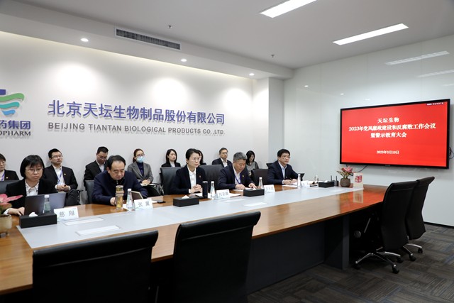 會議傳達(dá)學(xué)習(xí)了國資委、國藥集團(tuán)、中國生物黨委黨風(fēng)廉政建設(shè)和反腐敗工作會議精神,總結(jié)了2022年天壇生物全面從嚴(yán)治黨工作情況,對2023年推進(jìn)黨風(fēng)廉政建設(shè)和反腐敗工作提出要求。