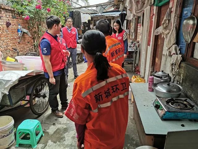在“新城環(huán)衛(wèi)”負責(zé)人的帶領(lǐng)下,青年志愿者們來到了環(huán)衛(wèi)工人何大姐夫婦和郭師傅的家中。